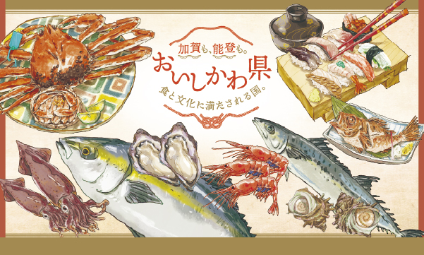 石川県漁業協同組合(JFいしかわ)のPRポスター、ポータルサイトとその告知用に都営地下鉄の広告を制作しました。石川県産の魚介の美味しさを、石川県の歴史や伝統、文化とともに県内外に発信し、魅力を感じてもらえるようイラストで表現しました。